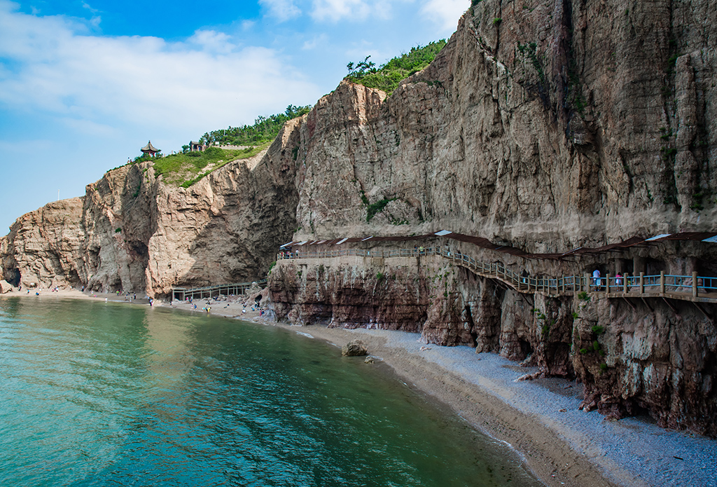 中餐后游覽集山、海、島、礁、灘、崖、洞于一體的【九丈崖公園】(約1、5小時)景區位于北長山島的西北角,夏季非常涼爽素有“天然空調”之美譽。景區以奇特的地質、地貌向游人展現長島的地質變化歷程,眾多天然的奇礁、異石、壁景、石畫、猶如一條天然露天石畫長廊,宛如來自世外的天然石畫。后游覽閃爍著珠光寶器的球石世界【半月灣公園】(約1小時)它長約1公里,依山而伸,抱水而臥,宛如一勾新月,所以取名半月灣,景區山巒滴翠,海水碧綠,海灘上布滿了有海水不斷沖刷形成的球石色彩斑斕璨然,讓人無不感嘆大自然巧奪天工。